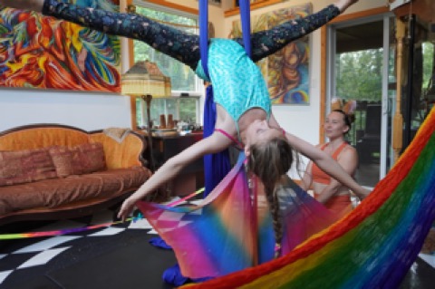Laura Hunt loves creative expression through music and dance. She grew up doing competitive gymnastics and cheer-leading. This naturally lead her into coaching for nearly ove a decade. She then discovered aerial silks and performed for many years with the Hamilton Aerial Group, again for over a decade, she states: “ My heart is very happy when I am flipping, twirling and teaching”!